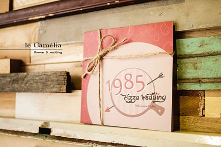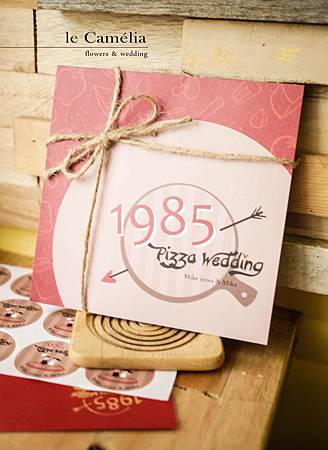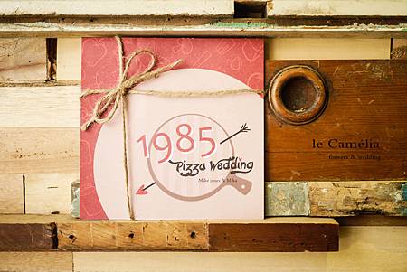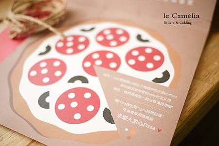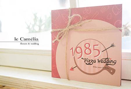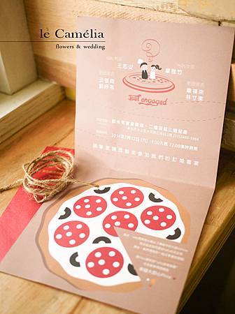 這個有故事的愛情,山茶花小姐一定要好好的發揚光大,新娘子甜甜的跟我說:「喜帖一定要Pizza主題唷♥」