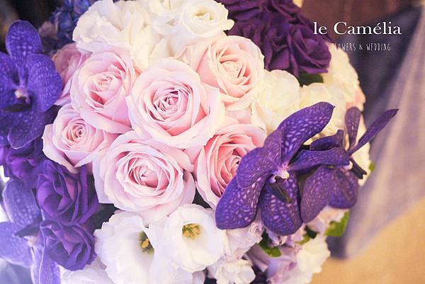 當山茶花小姐還是山茶花小妹時,粉紅和紫色就是公主的顏色。不只是單純的公主粉紅、不只是鄉村風情的薰衣草紫,不只是單一色調的呈現,我們希望用相異卻又如此契合的雙色來撞擊出新人想要呈現的精緻鄉村風。