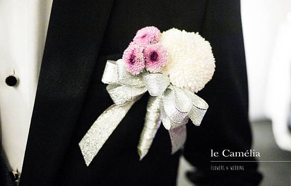 同系列的粉紫白胸花及捧花,圓圓的模樣超可愛的♥