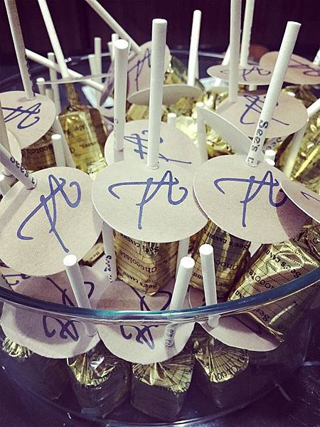 聰明的Ariel把多送的小圓標拿去套在棒棒糖上,一秒變成訂製婚禮小物XDDD